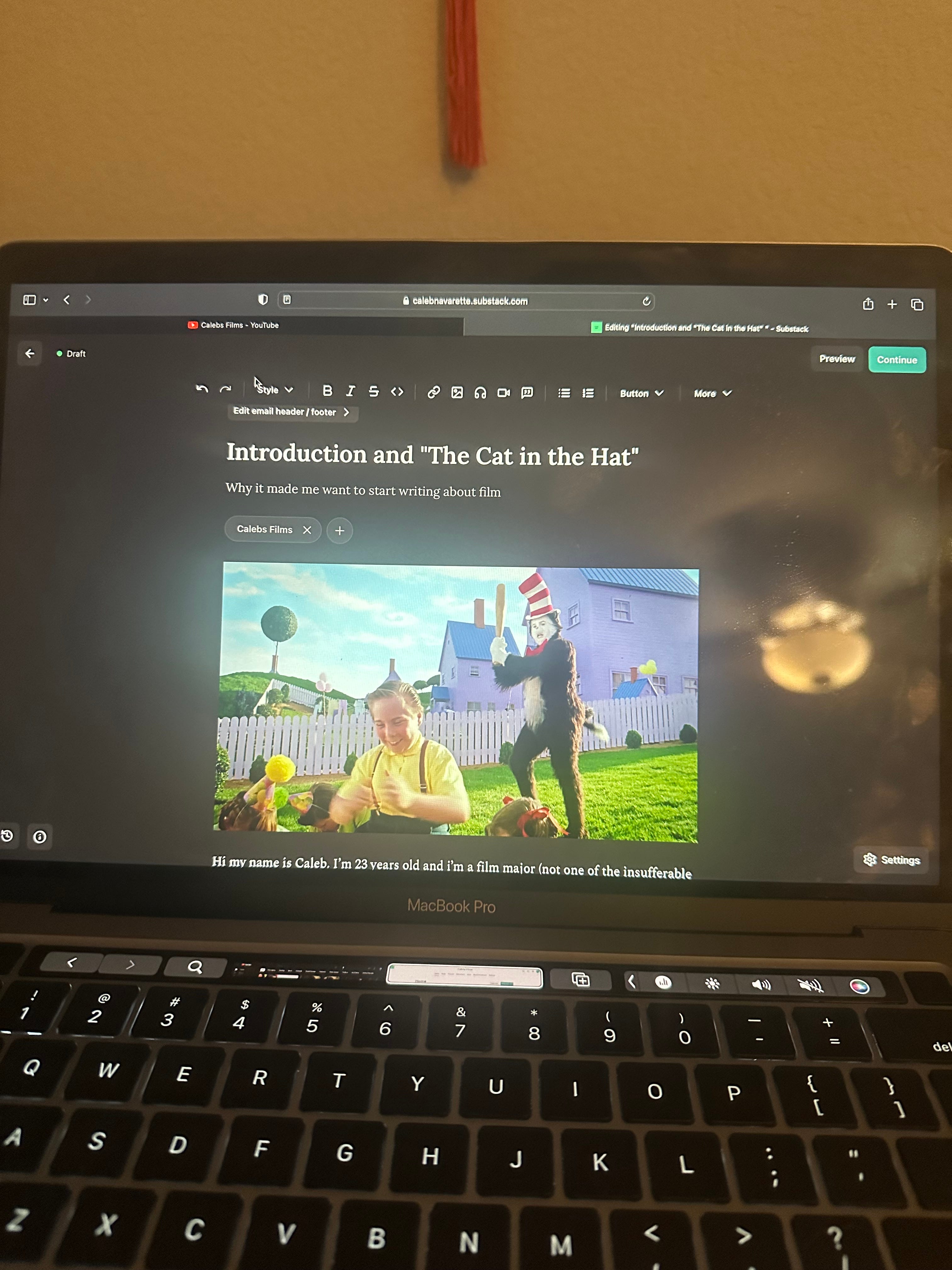 A year ago today, I decided to post my first article here on Substack. I had no idea how important hitting send on that article would be for me. At the time, I was not in the best place in my life after dealing with so much personal stuff and feeling lost in what I wanted. Being a film student, i had lost that passion I once had making films and didn’t know what I wanted to do. I had just uploaded an essay video on YouTube about the greatest film of this century “The Cat in the Hat” (lol) and had recently discovered what Substack was. I felt that it wouldn't hurt to give it a shot and would write a small post for the YouTube video I just made. After posting, I realized maybe I could talk about others films every week and it could be something I do for a bit. Today I sit here one year ago later typing this article and I couldn’t be happier with the progress this blog has made and also where I am mentally in life.